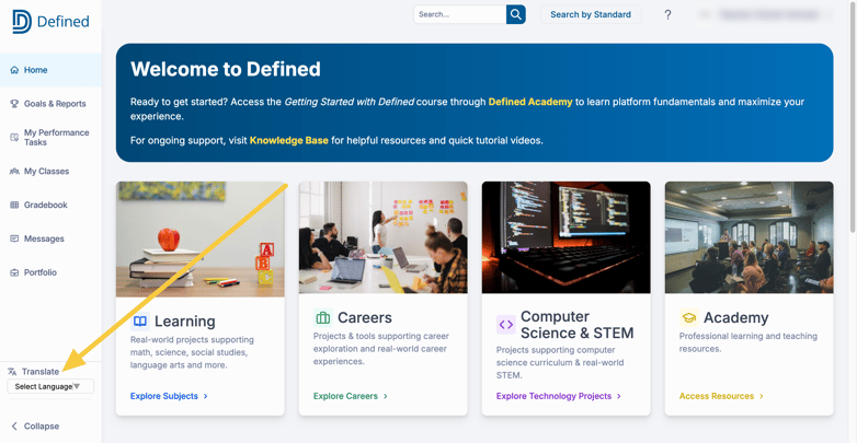A Google Translator is available to adjust the text in either an educator or student account- see screenshot below: